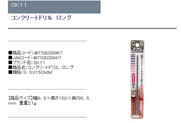 コンクリートドリル ロング 3.5X150MM 穴あけ コンクリート ブロック インパクトドライバー 振動ドリル
