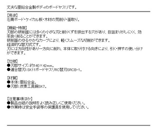 ●適合替刃:SK11ボードヤスリRC替刃SRCB-1。
