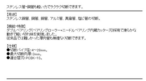 ●切断パイプ径:4〜28mm。