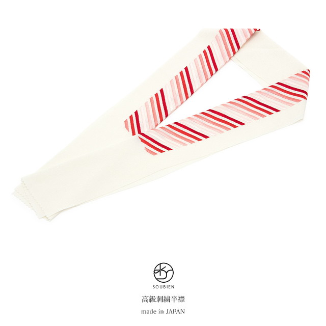 半襟 刺繍 振袖 成人式 半衿 白 卒業式 袴用 結婚式 ストライプ 縮緬 ちりめん 赤 レッド オフホワイト 矢羽根 和装小物 フォーマル 女性 レディース 日本製