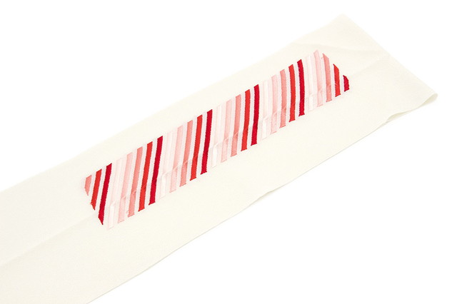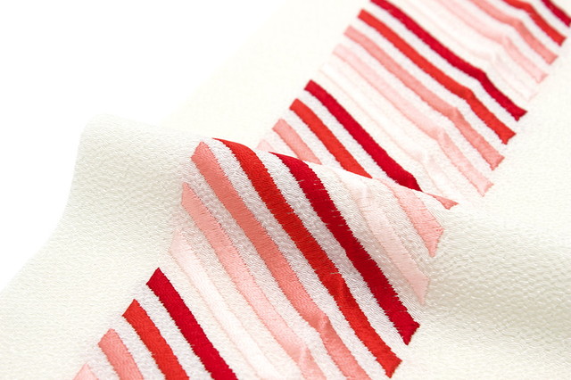 日本製の縮緬の生地に、同色系のグラデーションで、バイヤスボーダーが刺繍されています。