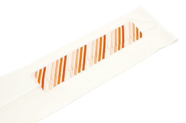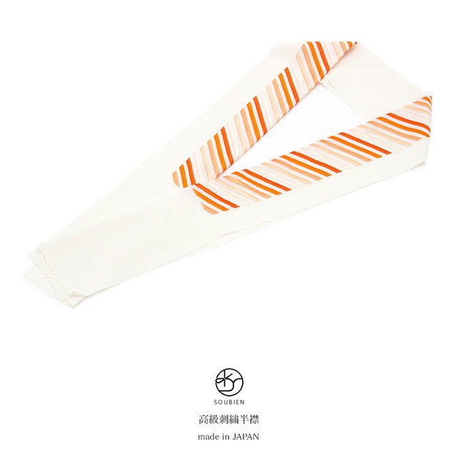 半襟 刺繍 振袖 成人式 半衿 卒業式 袴用 白 オフホワイト 橙色系 オレンジ 矢羽根 ストライプ バイヤスボーダー 縮緬 ちりめん 結婚式 和装小物 フォーマル 女性 レディース 日本製