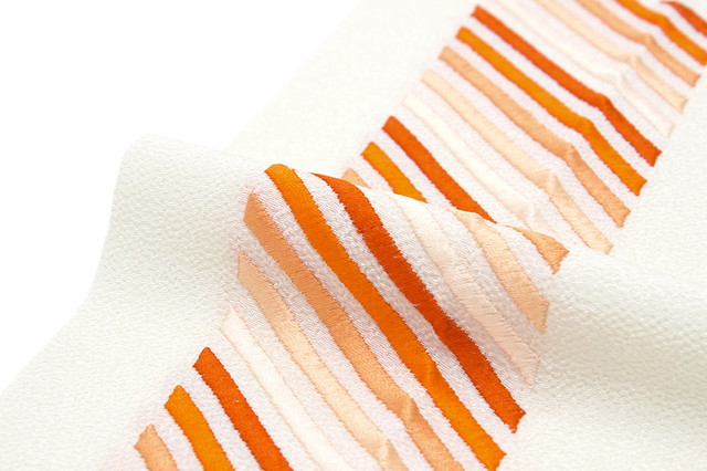 日本製の縮緬の生地に、同色系のグラデーションで、バイヤスボーダーが刺繍されています。