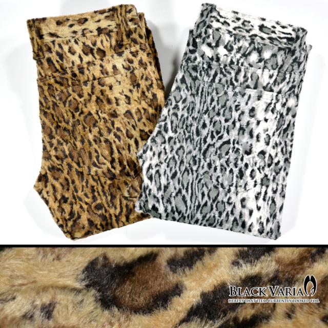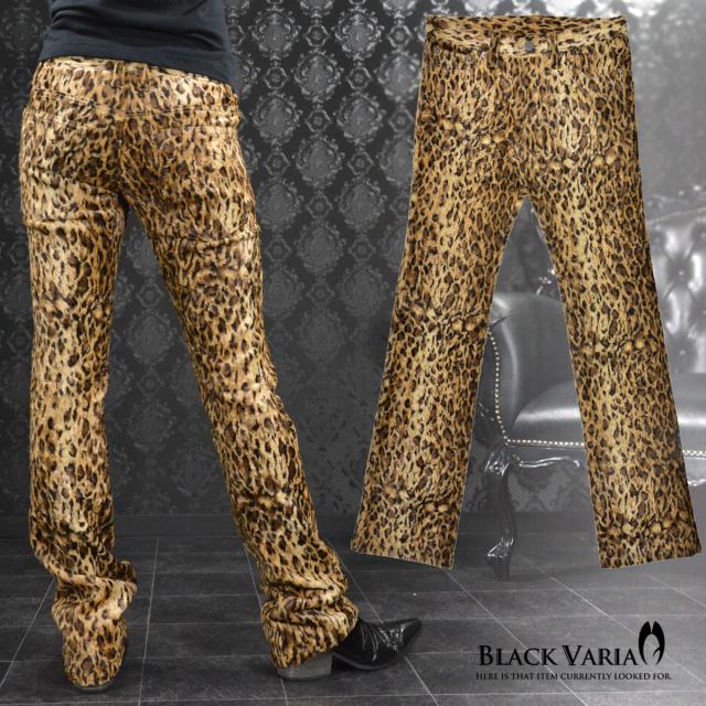 パンツ 豹柄 ヒョウ ファー シューカット メンズ ブーツカット ストレッチ ボトムス 柄パン(ブラウン茶) 933159