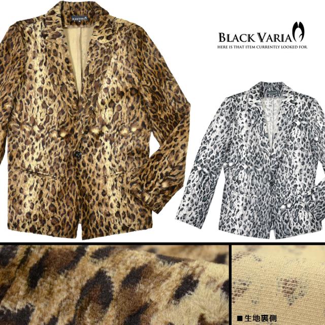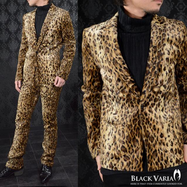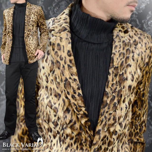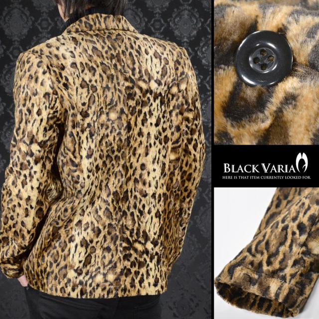 カットジャケット 豹柄 ヒョウ アニマル ファー メンズ テーラード 1釦 ジャケット(ブラウン茶) 162955