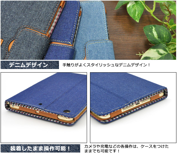 | デニムデザインのiPad mini Retina/iPad mini2/mini3用スタンドケースポーチ。衝撃やキズなどからiPad mini Retina/iPad mini2/mini3を守ります。背面を折り返すとスタンドとして使用できるので、動画視聴に便利です。スタンドは2段階に角度が調節可能です。 横開きタイプなので、手帳のように使うことができます。 ※iPad mini Retina/iPad mini2/mini3は付属しません。 ※ライセンス商品ではありません。 | ||||||||