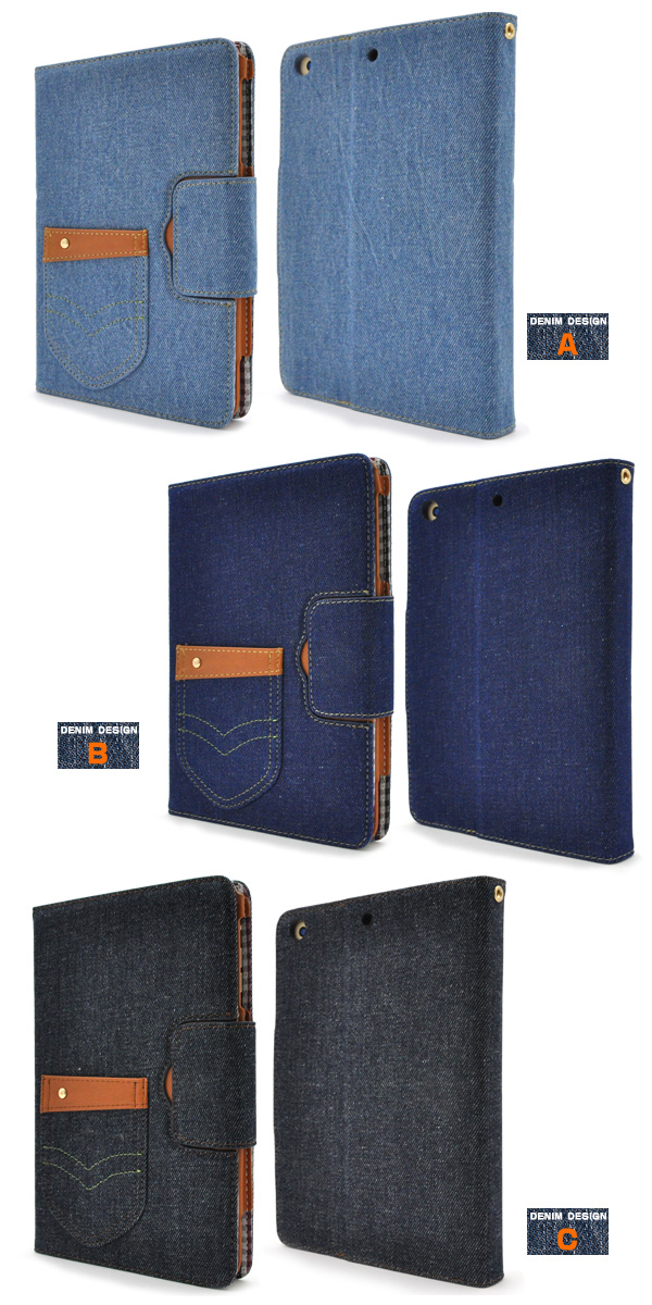 iPad mini Retina/iPad mini2/mini3用デニムデザインスタンドケースポーチ(ジーンズデザイン)