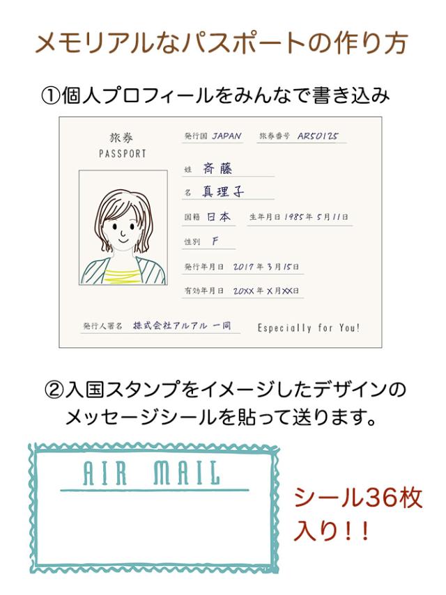 スタンプに見立てたメッセージシールを貼付ければ世界に一つだけのパスポートに!