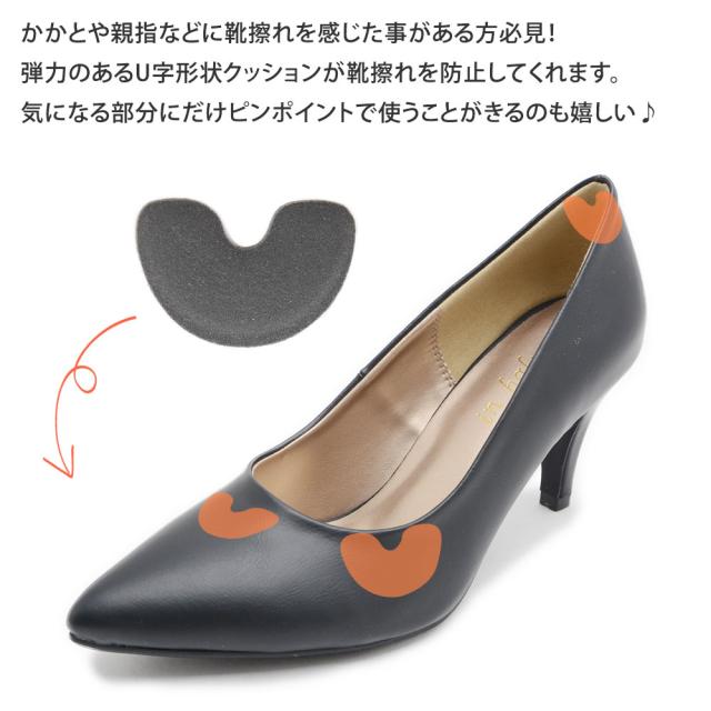 かかとや親指などに靴擦れを感じた事がある方必見!弾力のあるU字形状クッションが靴擦れを防止してくれます。気になる部分にだけピンポイントで使うことがきるのも嬉しい♪