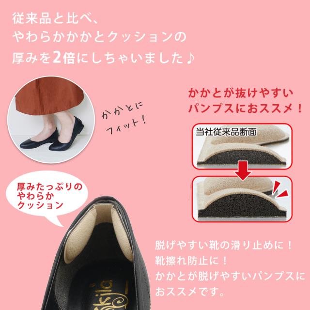従来品と比べ、やわらかかかとクッションの厚みを2倍にしちゃいました♪