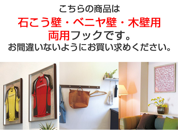 ●石こうボード壁と木壁の両方で使えるフックです。
