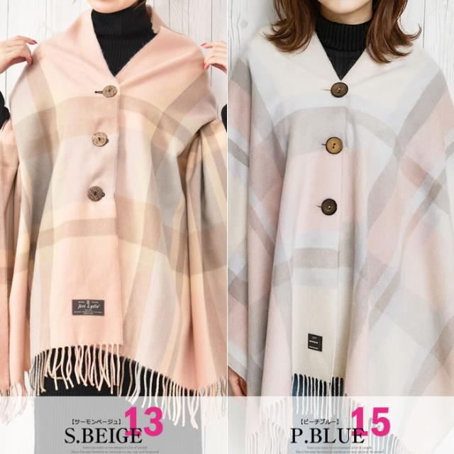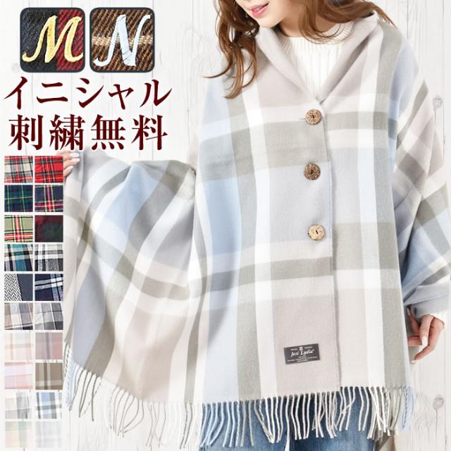 イニシャル刺繍無料★ 宅配便配送 ストール レディース 大判ストール ポンチョ 大判 ストール ボタン 授乳ケープ 出産祝 マタニティ イニシャル 刺繍 プレゼント ギフト イニシャル刺繍入りBIGボタン付き大判ストール