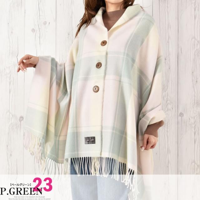 | 商品説明 | 暖かなしっかり素材でふんわり心地よいBIGボタン付き大判チェックストール♪ストールとしてもポンチョとしても使える便利な2wayタイプとなっております!大きいボタンが何とも言えない可愛さを引き出してくれます★ボタンがアクセントになって可愛く、風で飛ばされないから便利。年代問わずご使用いただけるのでBIGボタン付き大判チェックストールはプレゼントにもオススメです♪授乳ケープや自転車での防寒具として大人気となっております。お子様も包まれて暖か♪ |