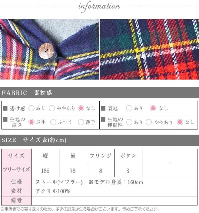 | サイズ | (約)縦185cm×横78cm・フリンジ8cm・ボタン3cm |