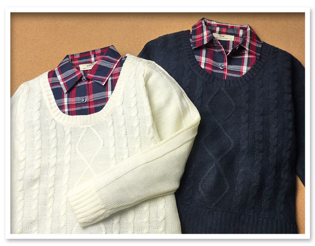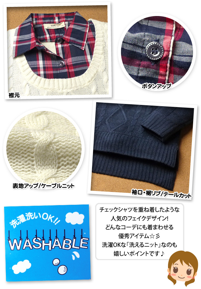 ・重ね着風/フェイクレイヤード ・ケーブルニット