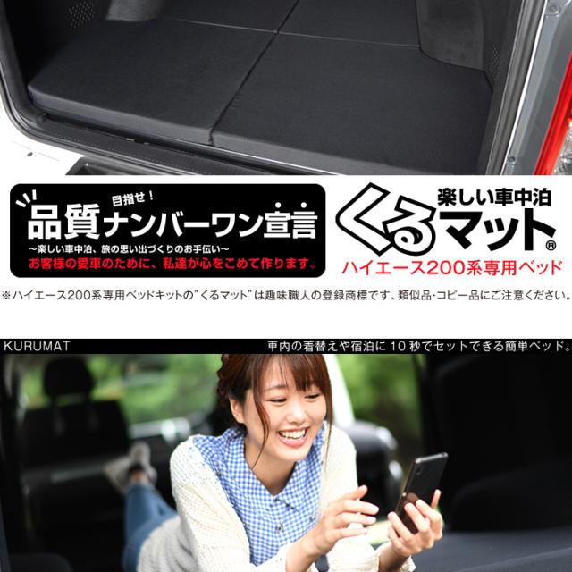 高品質!ハイエース200系専用 1型~8型の車中泊ベッド くるマット誕生!人気の車中泊 グッズ 車中泊マット 内装 ベッドキット Lot No.01