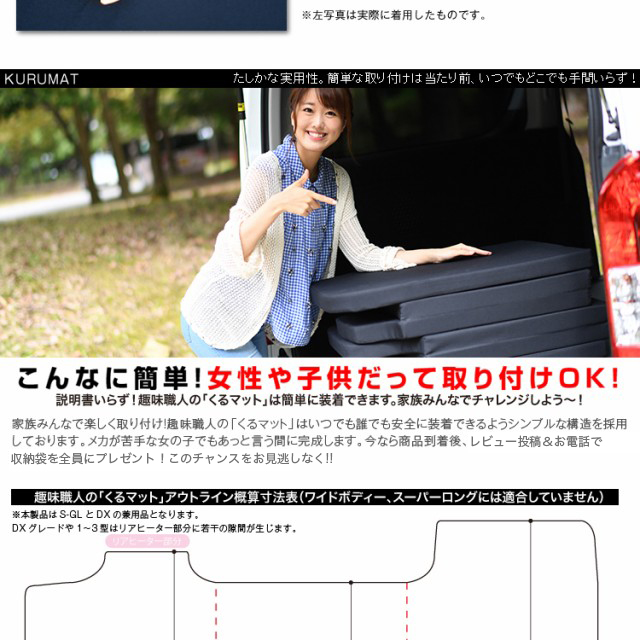類似品にご注意ください!最近、"くるマット"に酷似した類似商品やコピー商品がオークション、ネットショップで販売されております。見分けがつきにくい為、一部のお客様に誤解とご迷惑をおかけしております。これらの類似品は"くるマット"では御座いませんのでご注意下さい。偽物、コピー品の見分け方:商品名"くるマット"株式会社趣味職人の登録商標です。