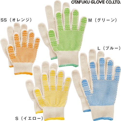 滑り止め軍手(ビニボツ) おたふく手袋 こどもてぶくろ スベリ止め付 10双 G-638 純綿 薄手