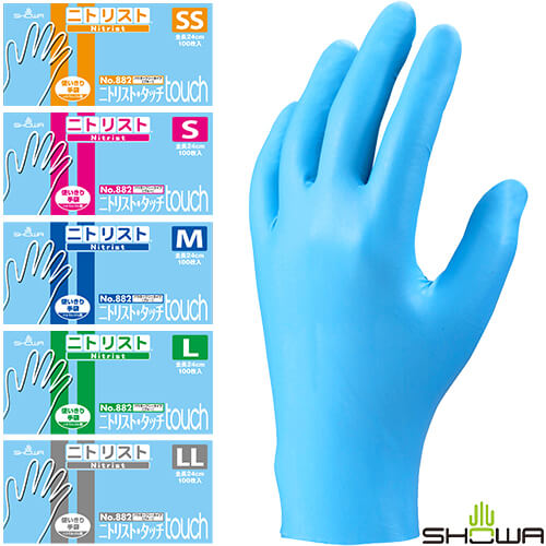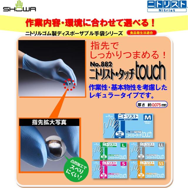 使い捨て手袋(使い切り手袋) SHOWA ショーワグローブ ニトリスト・タッチ 100枚入 No.882 ニトリルゴム 粉なし