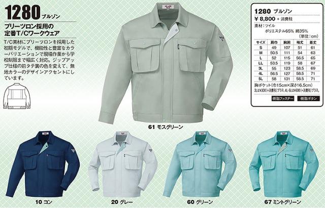 ジーベック 1280 プリーツロンミニ ブルゾン 作業服 作業着 長袖ブルゾン 通年 秋冬用 紺 工事 土木 溶接 塗装 上下セット対応