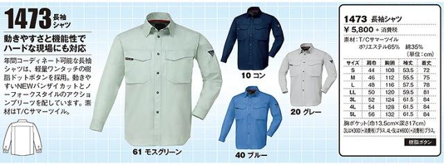 作業服 長袖シャツ ジーベック XEBEC 長袖シャツ 1473 作業着 通年 秋冬