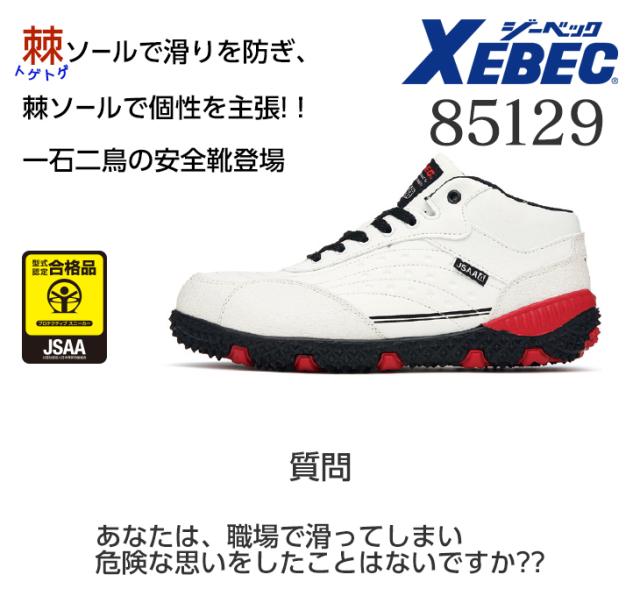 安全靴 軽量 ジーベック 85129 プロテクティブスニーカー セフティシューズ XEBEC メンズ レディース 男性 女性 大きい 小さい 幅広 4E JSAA 先芯あり クッション性 抗菌 防臭 反射材 耐油性 衝撃吸収 ホワイト ブラック レッド 黒