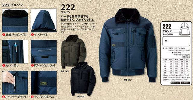 防寒ジャンパー ジーベック XEBEC 現場服 防寒ブルゾン(防寒ジャンパー) 222 作業着 防寒 作業服