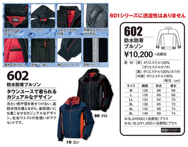 防寒ジャンパー ジーベック XEBEC 防水ブルゾン 602 作業着 防寒 作業服