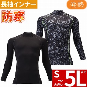 防寒インナーは筋肉の疲労軽減やケガ防止、寒さ対策や風邪予防をすることができます。伸縮性があり動きやすく作業効率があがる、生地が伸びる、しゃがむことが多い現場に最適です。適度な締め付けにより疲労の元になる無駄な筋肉の揺れを防ぎ、スタミナの向上や疲労感の軽減など、さまざまな面で体をサポートしてくれます。伸縮性があれば、体の動きを邪魔せず、さらに肌に柔らかくフィットするため、長袖を着ているという違和感を感じずに活動できます。また素材により、通気性は優れており、ムレることなく、快適に活動できます。さらに、汗を外に逃がすことで体温調節もサポートします。また作業現場はもちろん、アウトドア活動、スポーツ、通勤、通学など、多様なシーンでも活躍します!