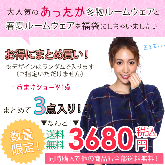 福袋 ルームウェア 3点入り もこもこルームウェアが入る!数量限定 冬物ルームウェア&春夏ルームウェア おまけショーツ 送料無料 [メール便不可]