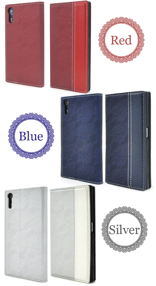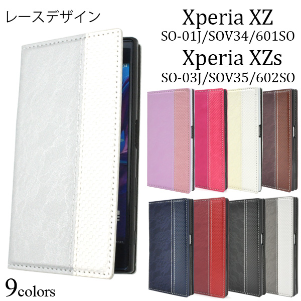 スマホケース Xperia XZ XZs 共通 SO-01J SOV34 601SO SO-03J SOV35 602SO 手帳型 レースデザインレザーケース フラップなし 横開き ベルトなし