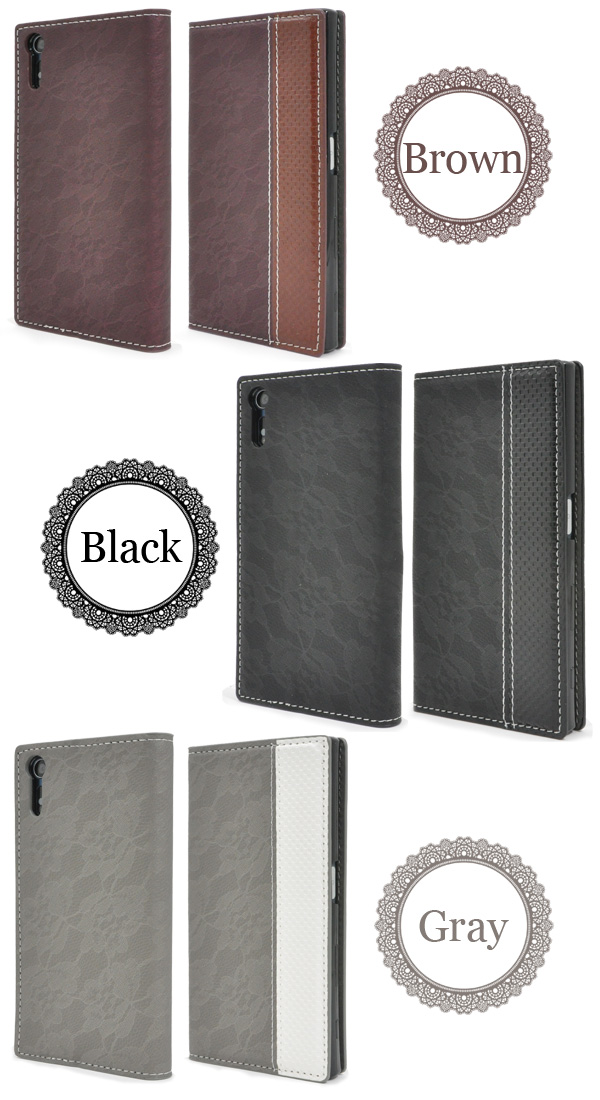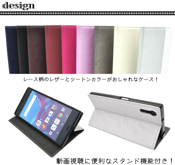 Xperia XZ / Xperia XZs用のレザー地の上に薄くレース柄がプリントされた上品なケースです。 内側はスウェード調になっており手触りも抜群!