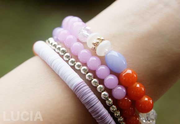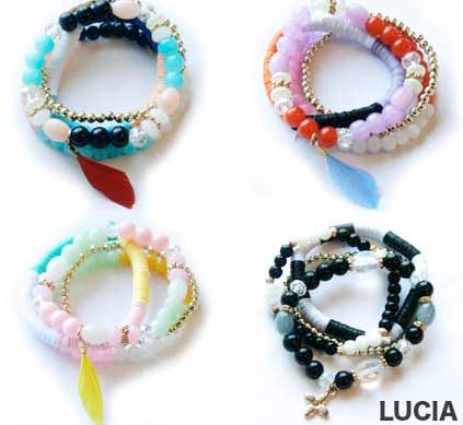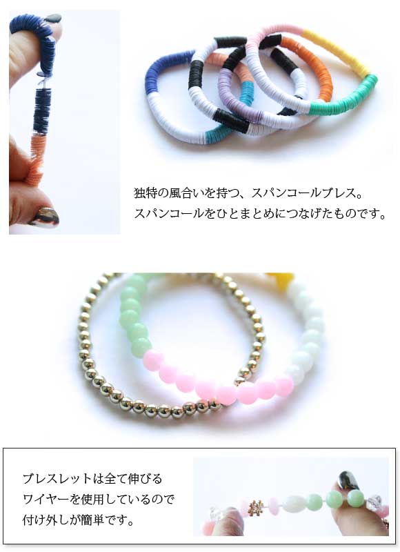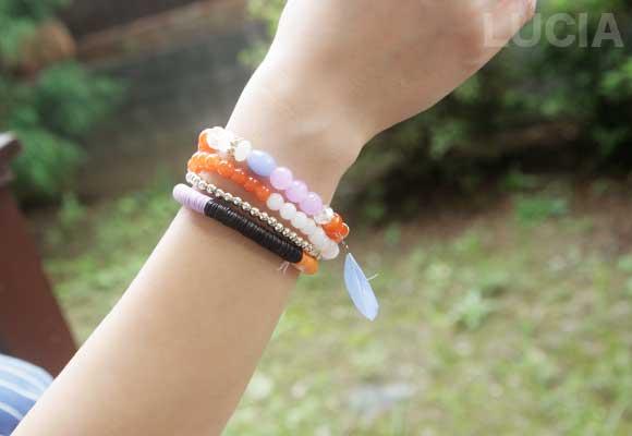 センス良く配置されたカラーと、バランスのよい4種類のブレスレットです。