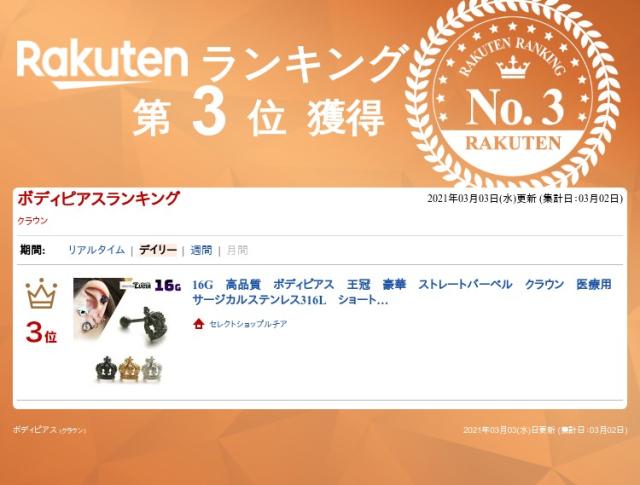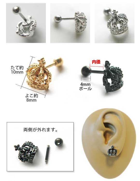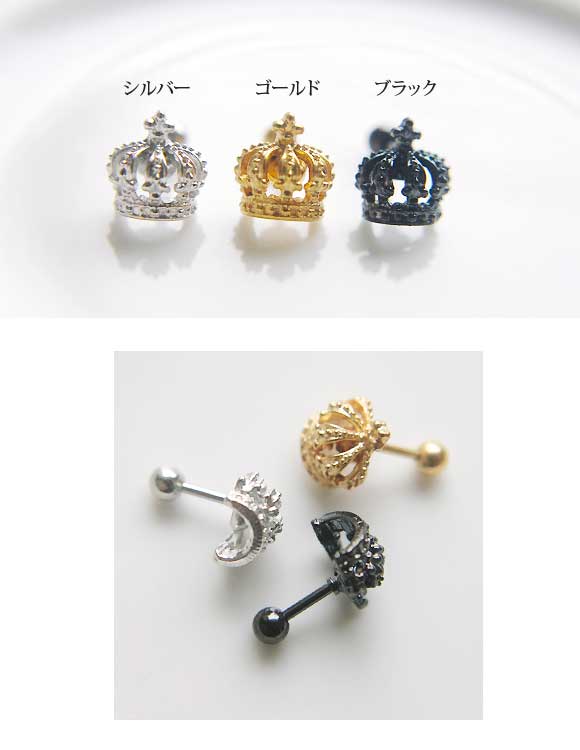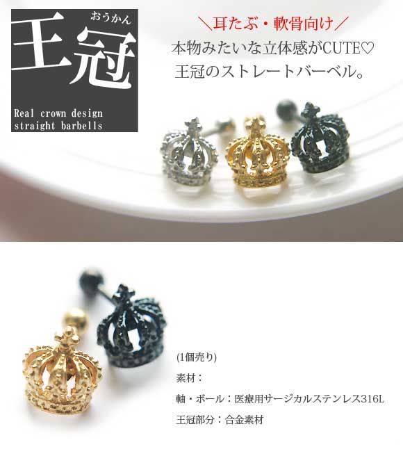 本日P2倍 16G ピアス ボディピアス ストレートバーベル 王冠 豪華 クラウン 金属アレルギー対応 316L 高品質 ステンレス 軟骨ピアス