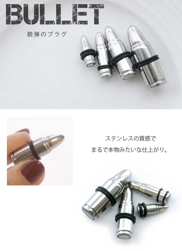 本日P2倍 4G 2G ピアス ボディピアス 銃弾 銃弾 バレット ピストル プラグ アイレット 拡張 金属アレルギー対応 316L 高品質 ステンレス