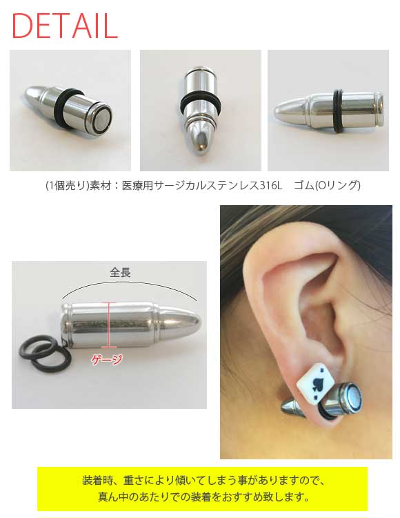 4ゲージ 2ゲージ ピアス 弾丸 金属アレルギー対応 つけっぱなし かっこいい 拡張 メンズ レディース