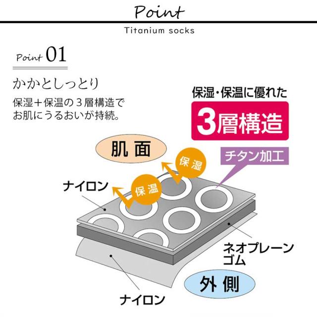 チタンでかかとしっとり!フィットしやすく保温、保湿効果抜群!