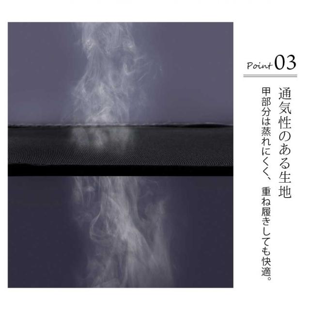 足の甲部分は通気性の良い生地を使っているので快適です。