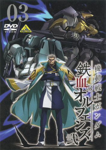地球への旅で世界の実情を知ったクーデリアが設立したアドモス商会が行う、ハーフメタル採掘場の視察。その護衛を依頼された鉄華団団長オルガ・イツカは、新たな敵の襲撃を察知する。三日月・オーガスは、オルガの指揮の下、敵撃退へと向かうが…。TVアニメ「機動戦士ガンダム 鉄血のオルフェンズ」第2期を収録したDVD第3巻。