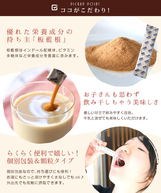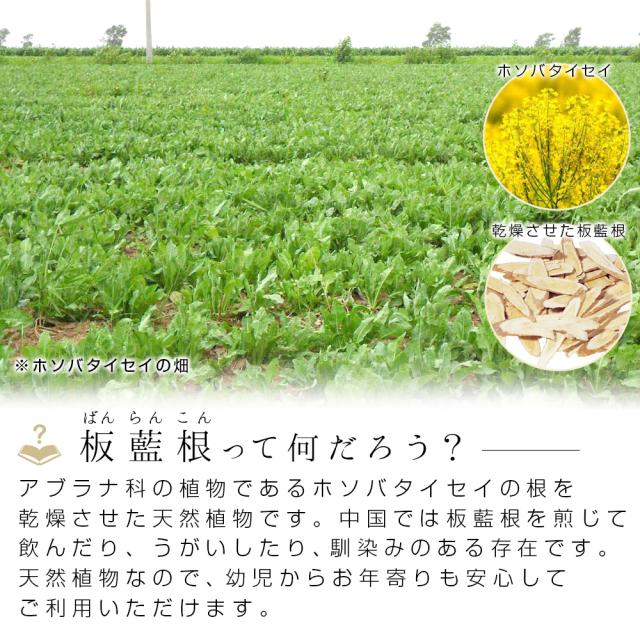 | 原 材 料 | 板藍根、デキストリン、麦芽糖、黒糖 |
