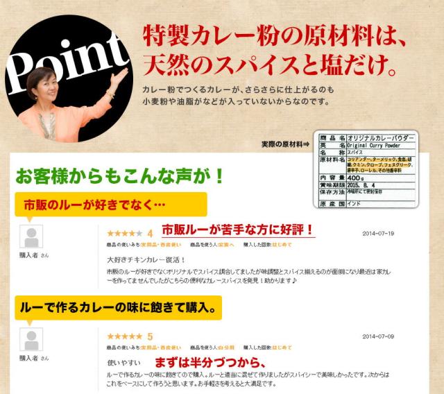 本格インドカレーはもちろん、野菜炒めや、チャーハン、ドライカレーなど。いろんな料理に加えて下さい!
