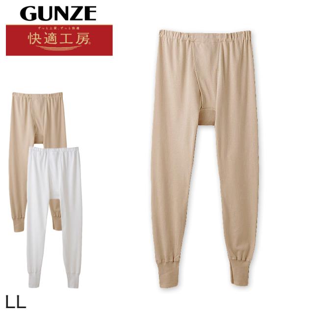 グンゼ 快適工房 紳士 あったかロングパンツ LL (前開き メンズ GUNZE 綿100% ズボン下 コットン 男性 下着 肌着 インナー 日本製 白 ベージュ 冬 大きなサイズ) (在庫限り)