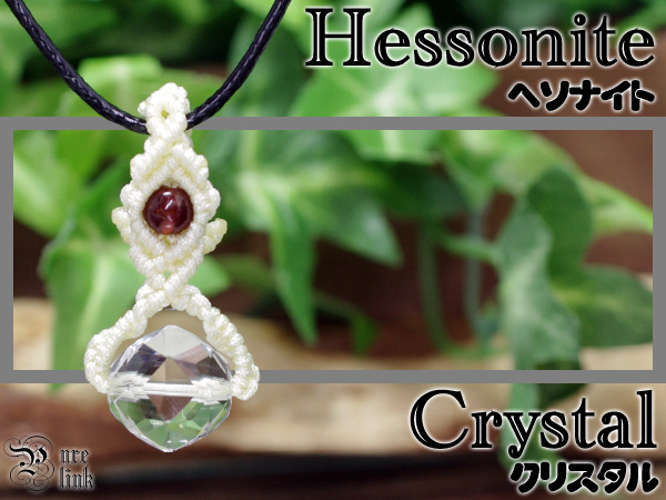 『ヘソナイトガーネット』&スターカットクリスタル(水晶)マクラメ編ペンダント ネックレス 1月誕生石【ぴゅありんく】白