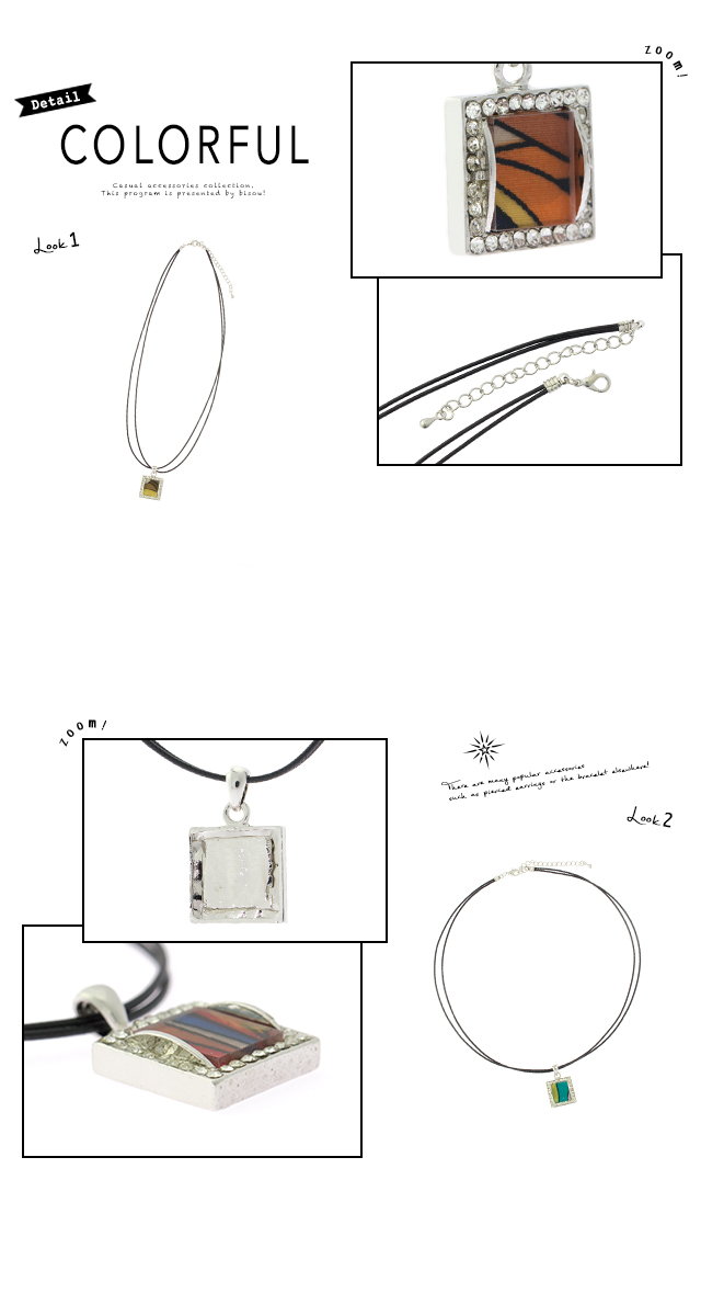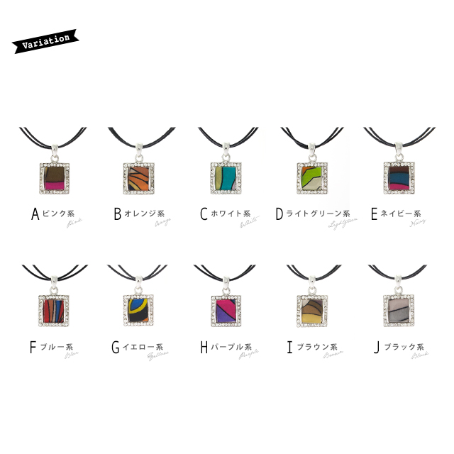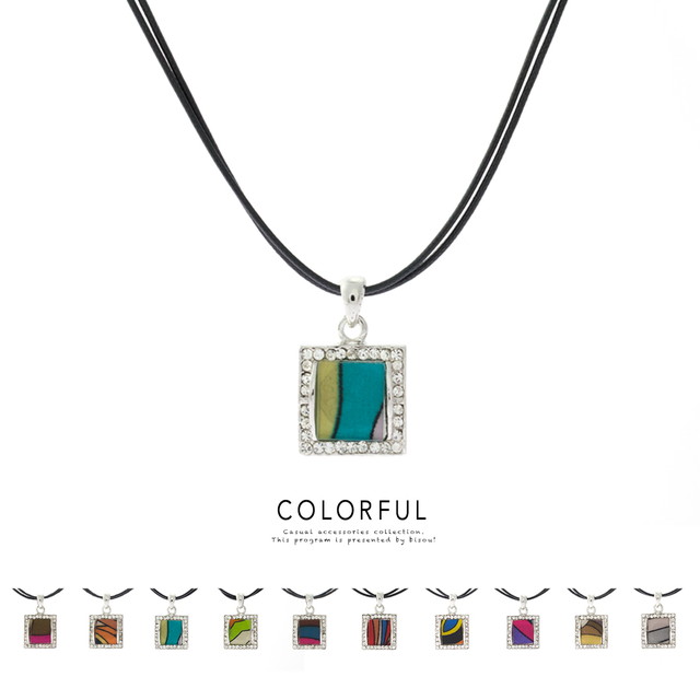 【カラフルなモザイク模様がおしゃれなレトロネックレス】幾何学模様/スクエア型/ラインストーン/2連/革紐/首飾り/アクセサリー