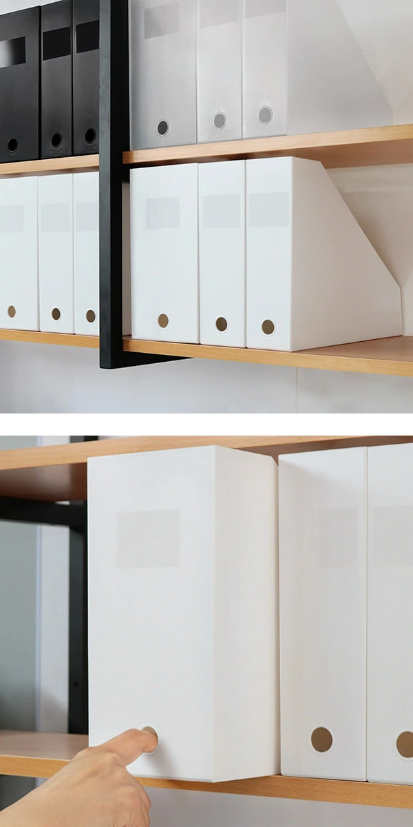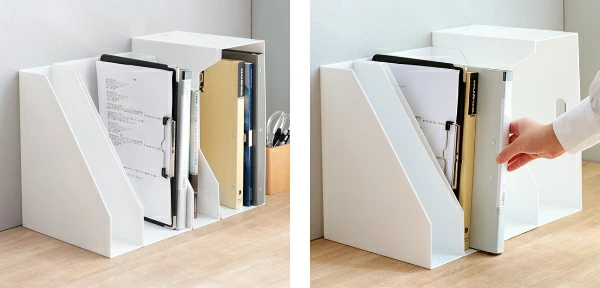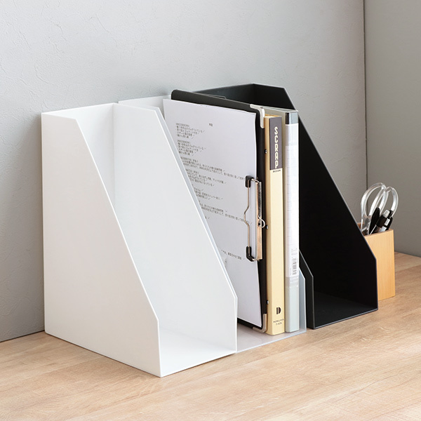書類やファイルを整理するのに最適なファイルケースです。デスクの上に置くと、必要な書類をサッと取り出せます。複数置いて、種類別に書類を仕分けるのもオススメです。オープンカット仕様なので、収納物のサイズを気にすることなく収納できます。