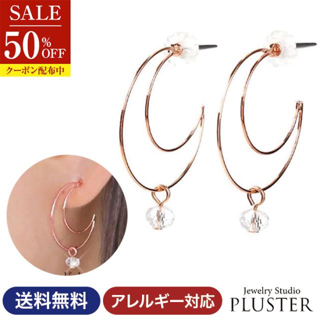 半額 ピアス レディース 金属アレルギー 対応 フープピアス チタンポスト チタン アレルギー フープ ムーン 揺れる 粒 月 ピンクゴールド 両耳 ブランド 20代 30代 40代 50代 60代 彼女 妻 誕生日 プレゼント 女性 アクセサリー 母の日
