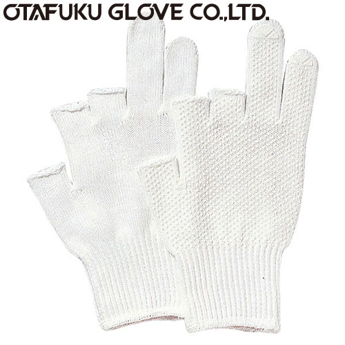 滑り止め軍手(ビニボツ) おたふく手袋 3本指出し手袋(スベリ止付) [10双入] 476 純綿 薄手