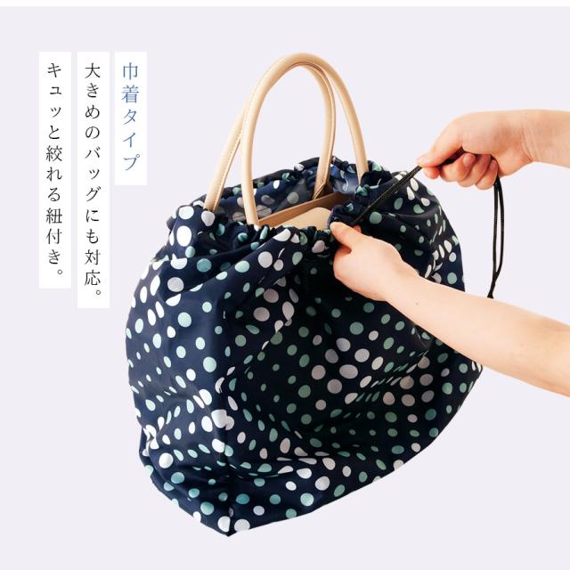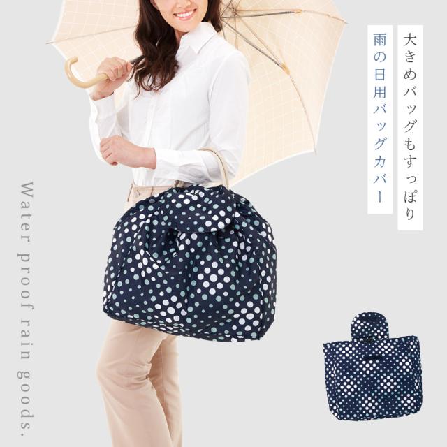 雨用 バッグカバー 雨具 防水対策 レディース おしゃれ 雨の日バッグカバー 水玉 ドッド ネイビー 巾着 大きめバッグ対応 大きい サイズ 撥水加工 折りたたみ 持ち運び 携帯 軽量 コンパクト 梅雨 レインウェア レイングッズ 通勤 通学 野外フェス 旅行 雨よけ 雨除...