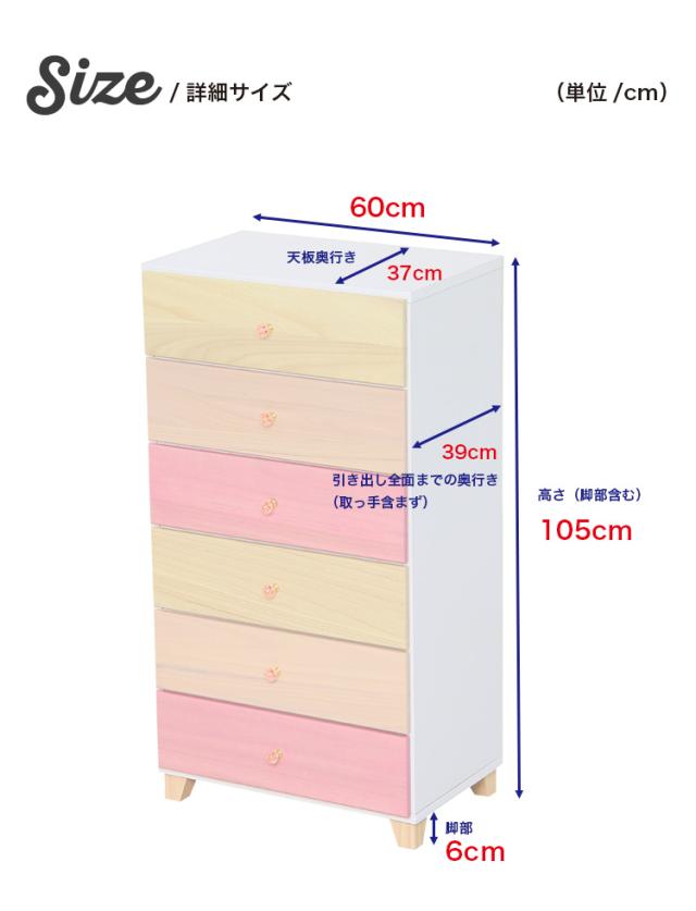オシャレに可愛く収納 リビング用ハイチェスト 6段 幅60cm 天然木(桐)日本製|petora-ペトラ-