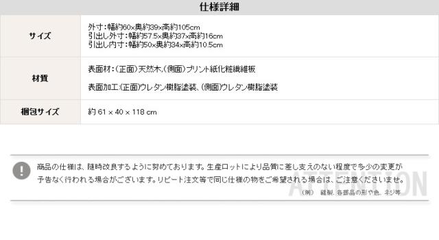 (約)外寸:(約)60x39x105cm引き出し外寸:(約)57.5x37x16cm